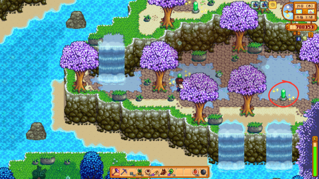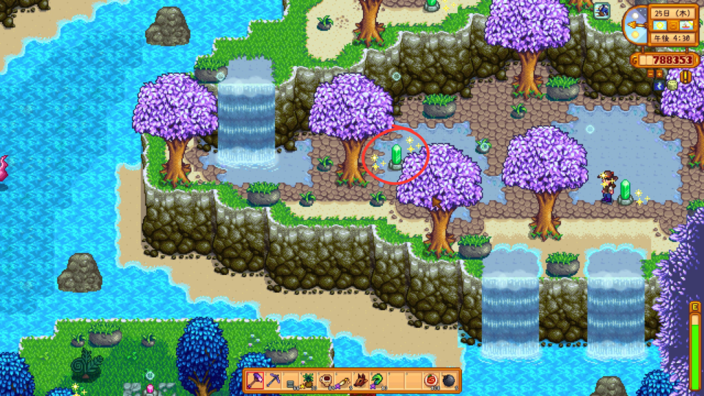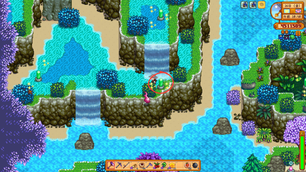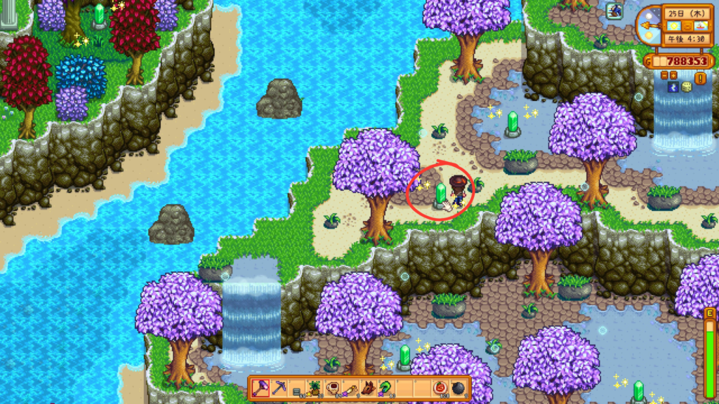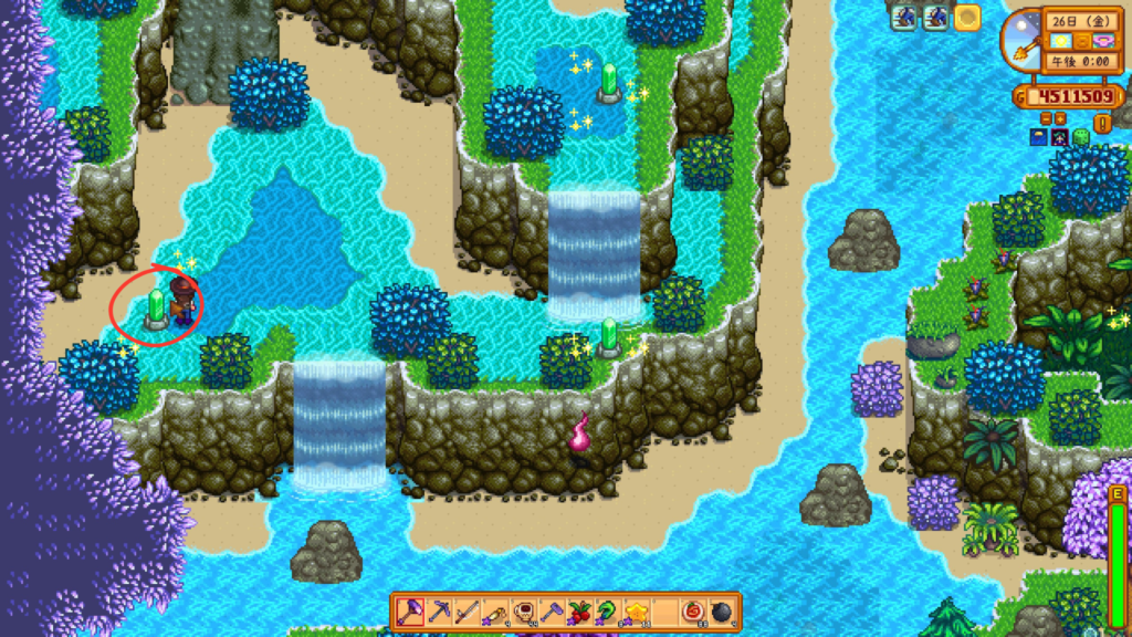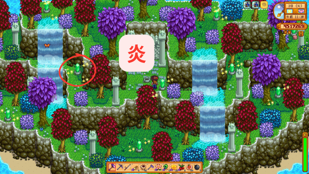 ピンクのクリスタルはところどころにあるので、戻りたくなったらそれに触れましょう。