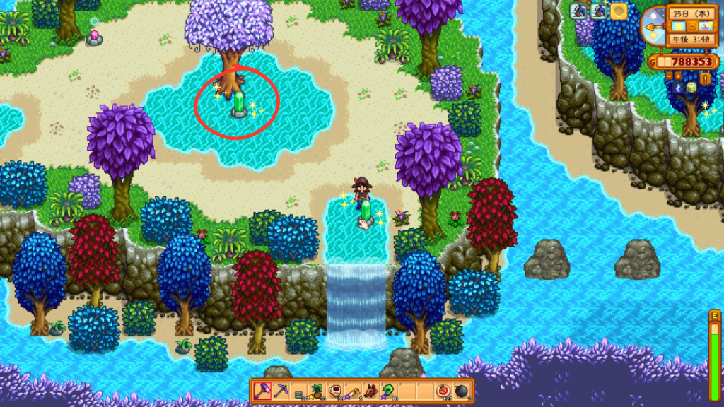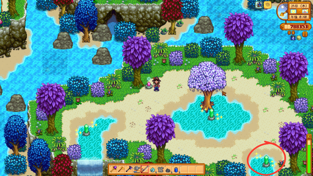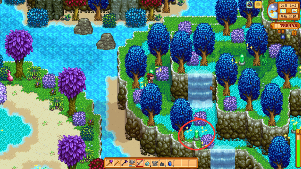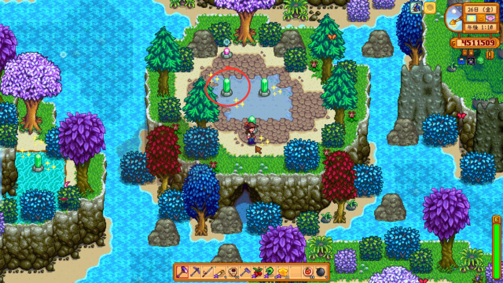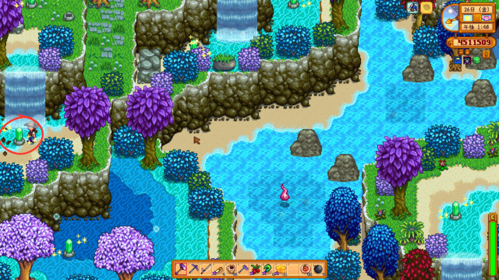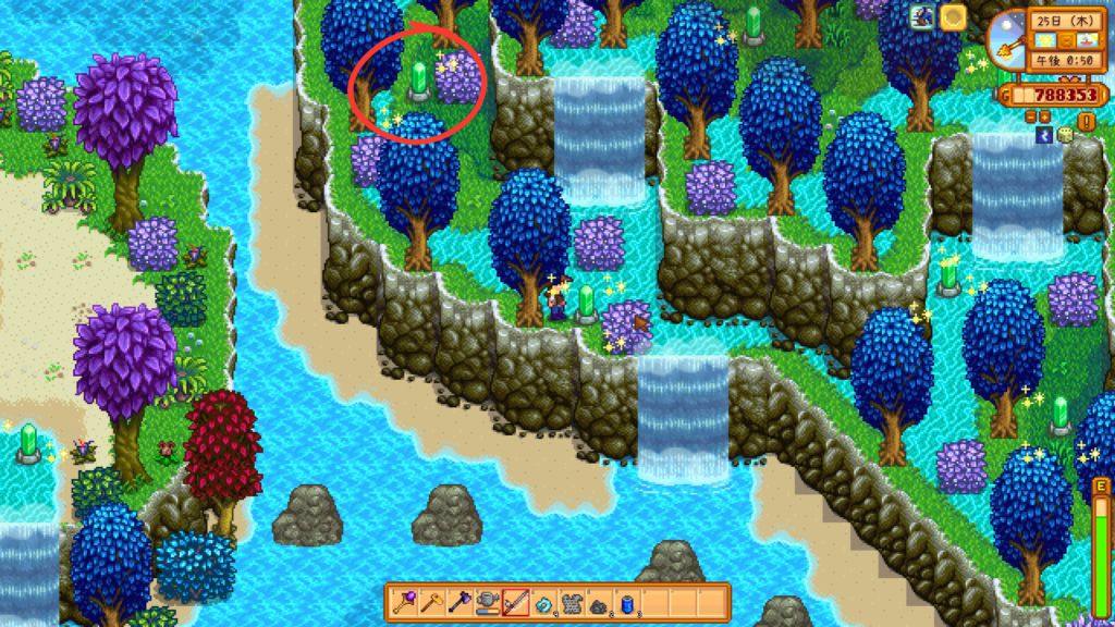ピンクのクリスタルはところどころにあるので、戻りたくなったらそれに触れましょう。