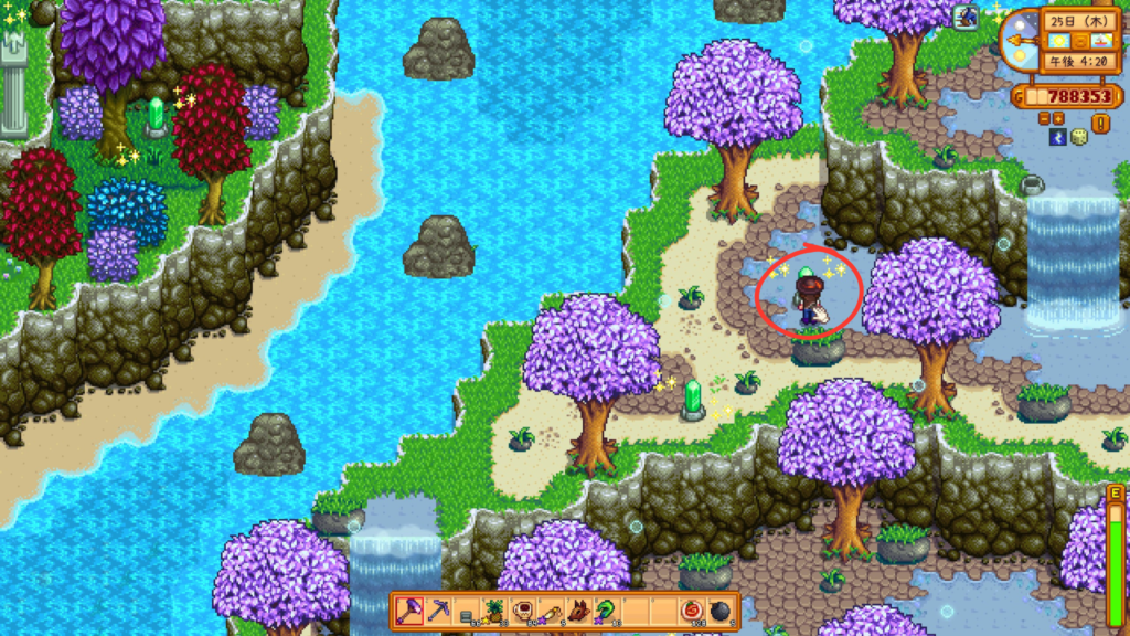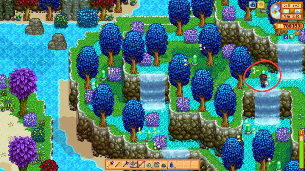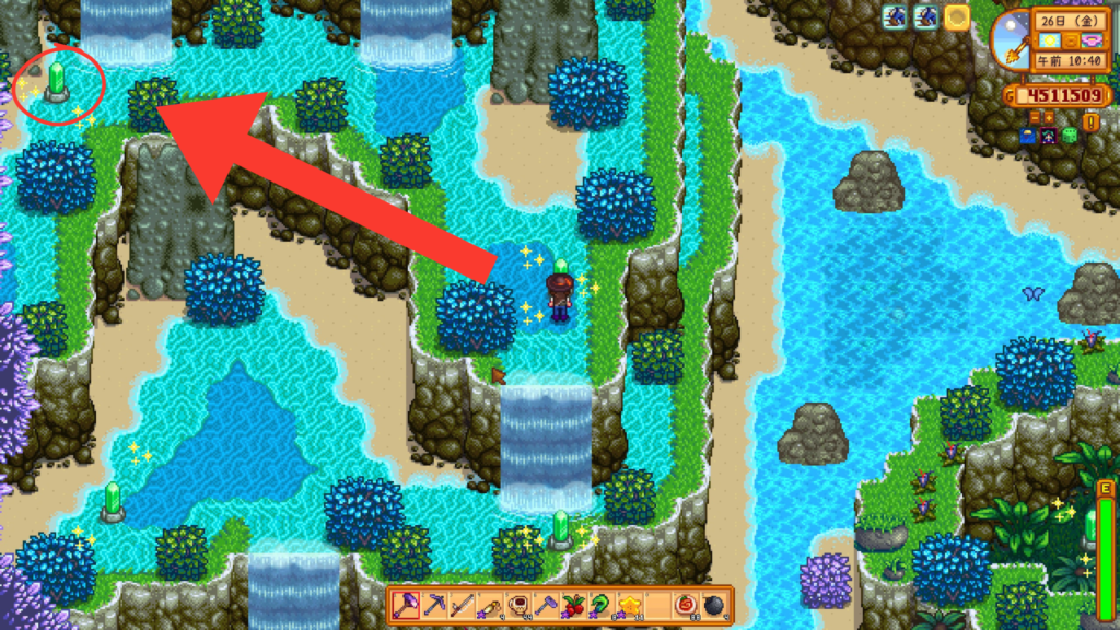 なので、同じ場所をウロウロしていると思ったら、今飛んできたクリスタルに触ってみましょう。