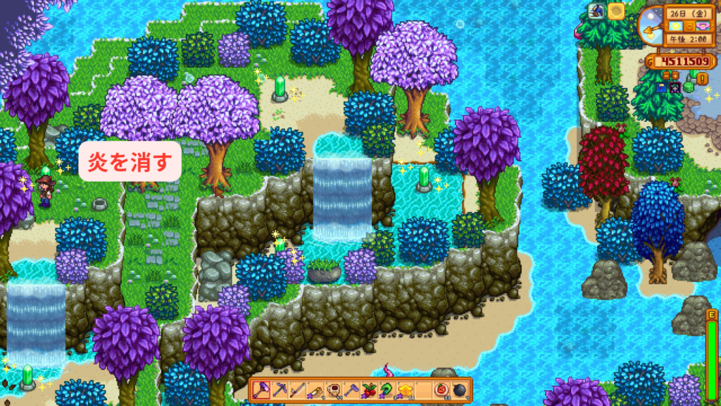 スタデューバレーの大型Modである、RSV(Ridgeside Village)のストーリークエストの「霊界の炎を5つ消す」イベントの攻略方法についてまとめました。