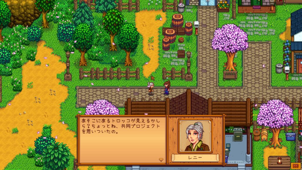 - レニー(村長のおばちゃん)に納品(鉄ののべ棒10、金ののべ棒5、木材300)