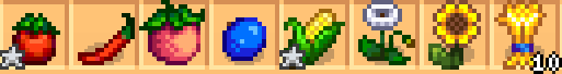 - 夏の作物(トマト、トウガラシ、ブルーベリー、メロン、とうもろこし、ポピー、ヒマワリ、コムギ10)