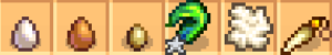 - 鳥小屋2段階、ニワトリ2種(茶・白)、アヒルを買う